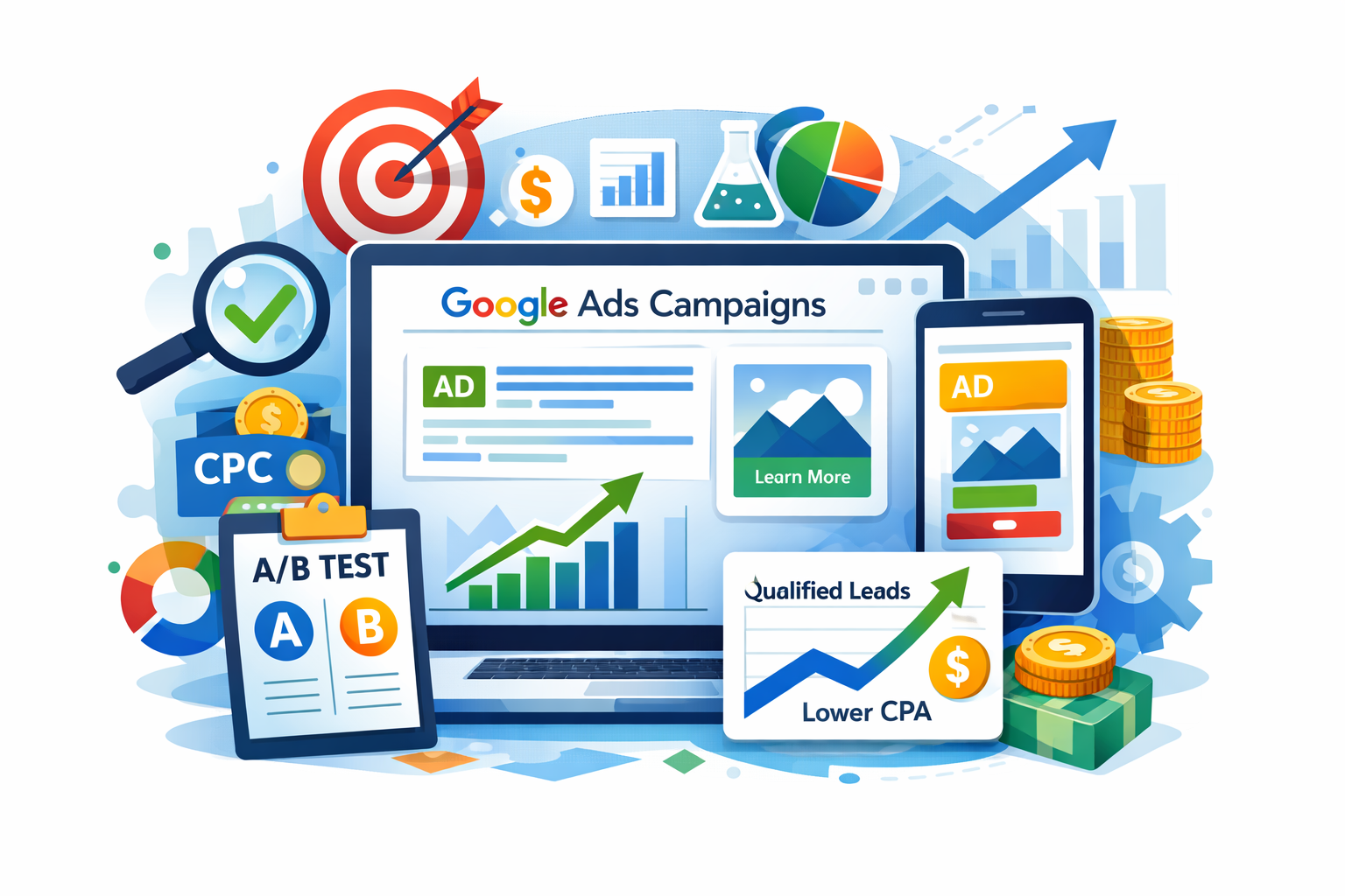 – Funnel optimization (CPL ↓, ROAS ↑)
